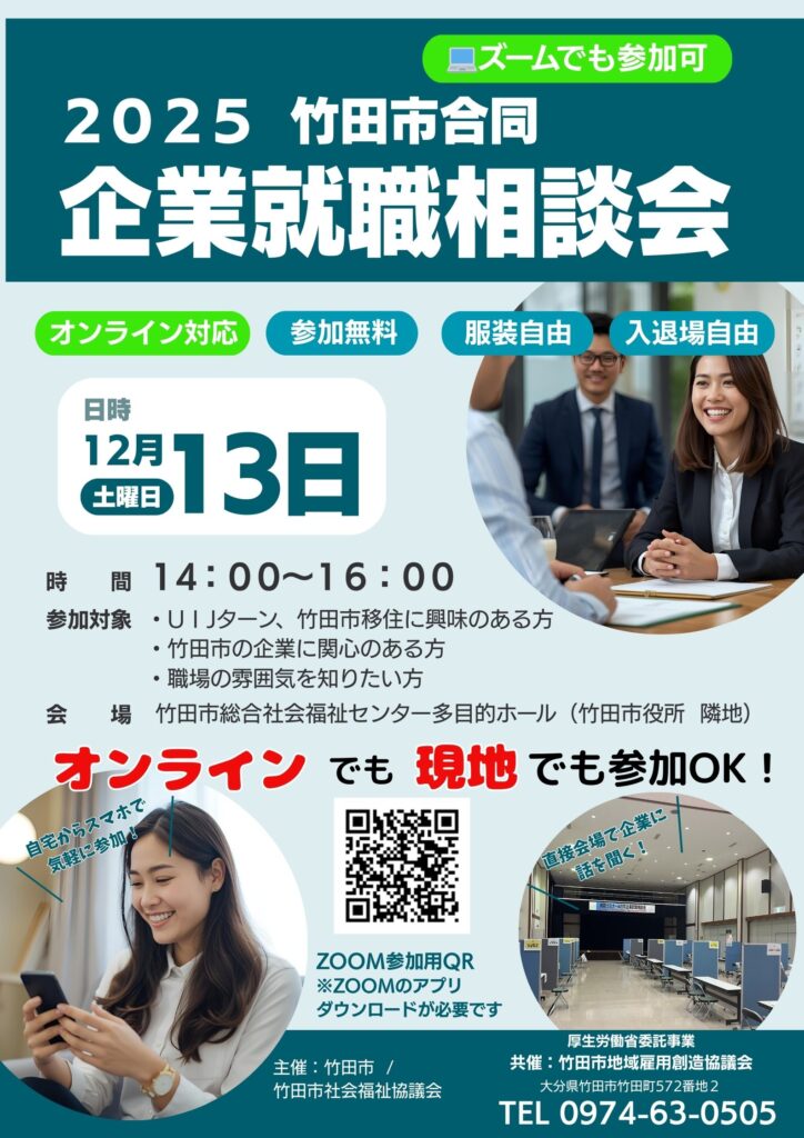 このたび、竹田市社会福祉協議会様と共催で、「オンライン合同企業説明会」 を開催いたします🎉