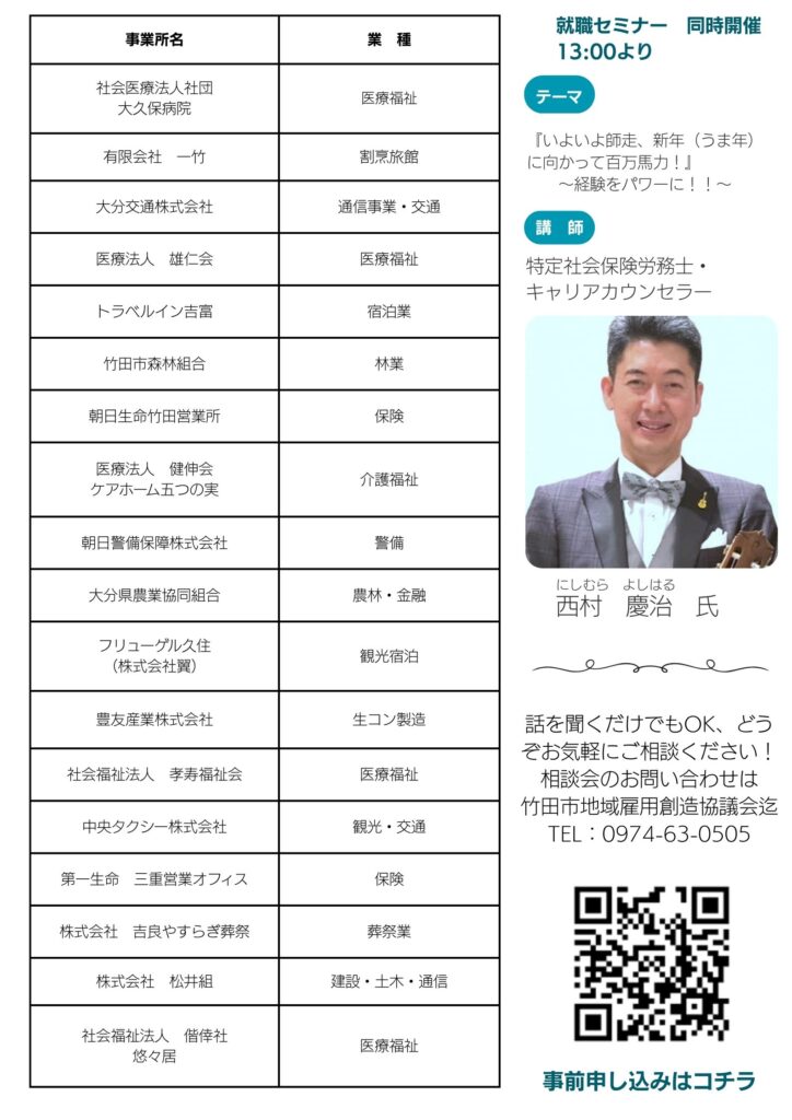 今回、より多くの方に情報が届くよう、竹田市外のハローワーク・大分労働局・ジョブカフェなどでも告知を行っています。
