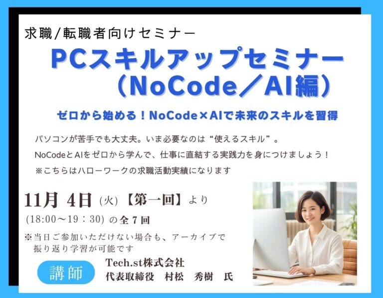 🌟PCスキルアップセミナー(NoCode編)開催のお知らせ